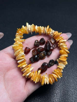 C35096181 Amber Beeswax Bracelet + Loose Beads, Total Weight Approx. 14.47g, Sell as a Lot 10+