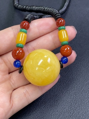 C32719471 Amber and beeswax pendant, total product weight approximately 6.24g