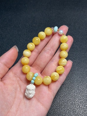 C36243316 Amber Beeswax Bracelet, Total Weight Approx. 17.37g, Size 9mm, Paired with Hetian Jade, Non-Gold