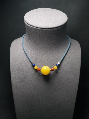 C36302531 Amber and Beeswax Bead Strand with Non-Natural Accent Stones, Total Weight Approx. 24.85g Including Cord, Bead Size About 10.8mm