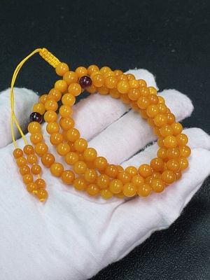 C33922941 Amber Beeswax Bead Strand Total Weight Approx. 40.14g Size About 7.6mm