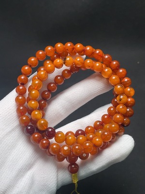 C37432147 Amber Beeswax Bead Necklace with Visible Partial Repairs, Total Weight Approximately 35.6g, Size About 8.2mm