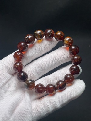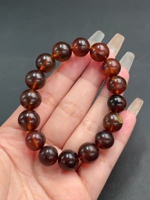 C36228218 Amber Beeswax Bracelet with Southern Red Agate, Total Weight Approx. 20.8g, Size About 12.7mm