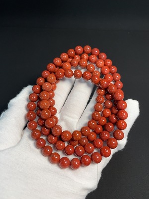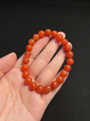 C39639999 South Red Agate Bracelet, approx. 8.7mm beads, total weight approx. 21.15g, visible organic inclusions