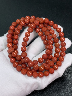 C40684387 Red Agate Bracelet (Non-Gold Inlaid, Approx. 7.6mm, Total Weight ~15.47g, Visible Organic Matter, Non-Natural Accent Stones Considered)