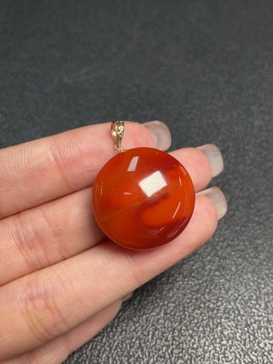 C35154847 18k Red Agate Pendant with Visible Organic Matter, Total Weight Approx. 9.14g