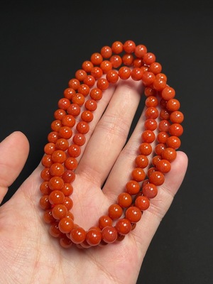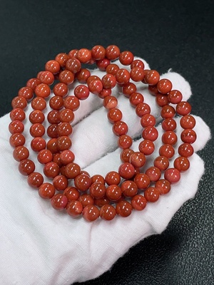 C35092859 South Red Agate Bead Strand with Visible Organic Matter, Total Weight Approximately 27.33g, Size About 5.6mm
