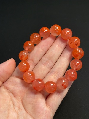 C39642447 Red Agate Bracelet, approx. 11.6mm, total weight approx. 29.91g, visible organic matter, with amber
