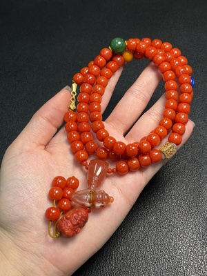 C36228291 South Red Agate Bead Strand with Hetian Jade, Non-Natural Accent Stones Considered, No Hallmark, 18K Gold Tested, Total Weight Approx. 94.93g, Size Approx. 8.4mm