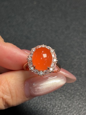 C30566566 South Red Agate Inlaid Ring Non-Gold Inlaid Adjustable Total Weight Approx. 4.19g