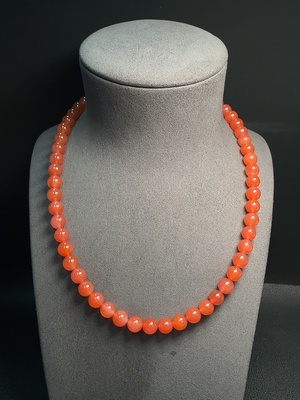 C20287144 Red Agate Bead Necklace with Visible Organic Inclusions, Total Weight Approx. 60.28g, Bead Size 7.6mm