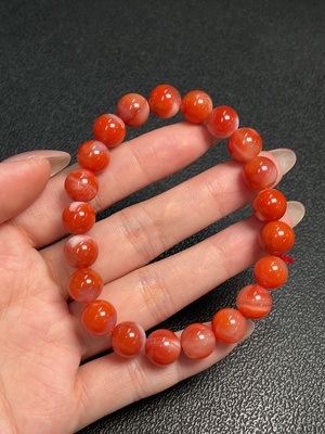C34992041 Red Agate Bracelet with Visible Organic Matter, Total Weight Approximately 26.08g, Bead Size About 9.4mm