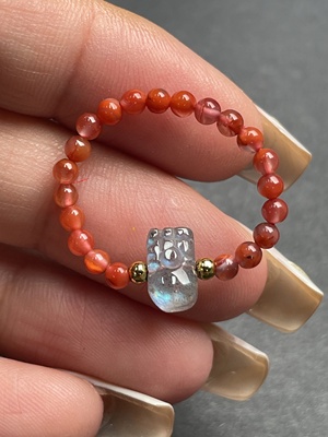 C30536317 South Red Agate Inlaid Ring Non-Gold Setting Adjustable Size Total Weight Approx. 3.96g