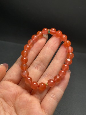 C34992855 South Red Agate Bracelet with Visible Organic Matter, Total Weight Approximately 16.85g, Size About 8.9mm, Non-Gold