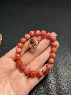 C36242014 South Red Agate Bracelet with Visible Organic Matter, Total Weight Approx. 33.64g, Size About 11.1mm