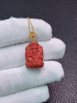 C34949897 18K Red Agate Pendant with Diamond Accents, Colorless, Total Weight Approx. 7.21g