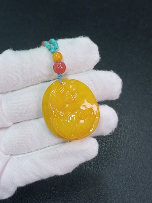 C37414726 Amber Beeswax Bracelet with Partial Visible Repairs, Possibly Adorned with Turquoise, Total Weight Approximately 14.1g, Bead Size Around 10.4mm
