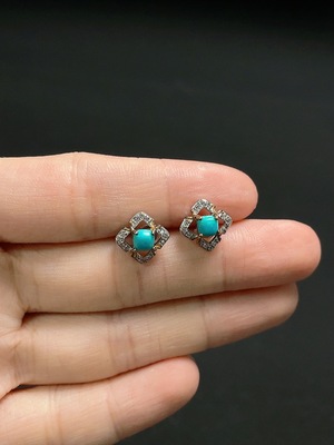 C39621351 Turquoise earrings containing other mineral components, non-gold, total product weight approximately 2.8g, size about 5.2mm