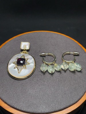 C35145321 Garnet Pendant + Prehnite Earrings Non-Gold Total Weight Approx. 25.1g Sell as a Lot