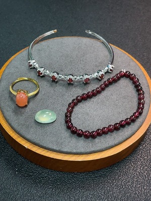 C32786133 Red Agate + Prehnite + Garnet Jewelry Non-Gold Total Weight Approx. 19.46g Sell as a Lot