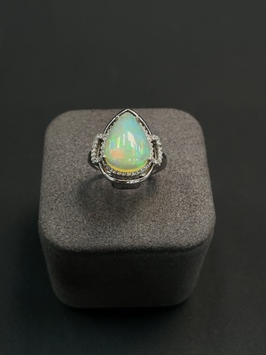 C37409198 Opal ring, color origin undetermined, non-diamond, non-gold, total weight approximately 1.92g, size 9