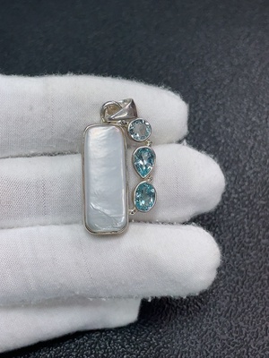 C32743778 Pearl pendant with topaz, color origin undetermined, non-gold, total weight approximately 7.15g