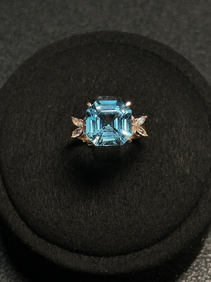 C35097320 Topaz Ring, 36% Gold Content, Color Origin Undetermined, Total Weight Approx. 4.57g, Size 15, Stone Dimensions 10.6*10.8mm