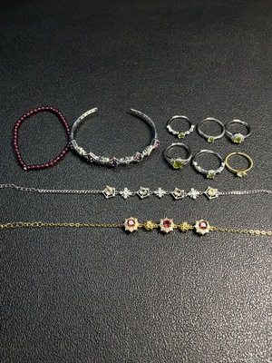 C37409302 Garnet + Topaz + Peridot + Crystal Jewelry Non-Gold Adjustable Color Origin Undetermined Total Weight Approx. 33g Sell as a Lot