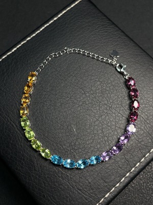 C26989979 Topaz inlay bracelet, non-gold setting, total weight approx. 7.34g, color origin undetermined, with crystal, peridot and garnet