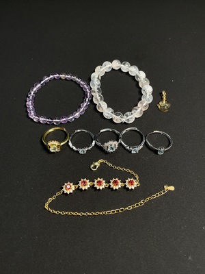 C34951844 Crystal + Garnet + Red Agate + Sapphire + Topaz (Color origin undetermined) + Amber & Beeswax (Coated with colorless film) Jewelry (Non-gold) Total weight approx. 44.95g