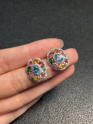 C37455360 Tourmaline earrings with topaz, color origin undetermined, non-gold, total product weight approximately 4.31g