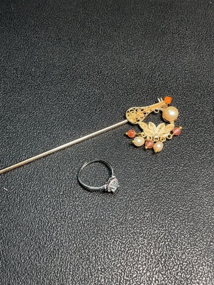C33889198 Topaz Ring (Color Origin Undetermined) + Pearl Hairpin (Non-Gold) Total Weight Approx. 12.52g Sell as a Lot