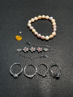 C34040020 Garnet + Pearl + Spinel + Topaz (Color Origin Undetermined) + Amber Coated with Colorless Film Jewelry (Non-Gold, Total Weight Approximately 23.32g, Sell as a Lot)