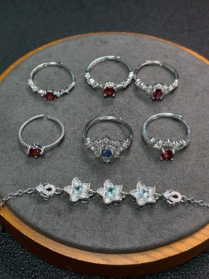 C32743882 Sapphire + Garnet + Topaz Jewelry with Undetermined Color Origin, Non-Gold, Total Weight Approx. 14.35g, Sell as a Lot