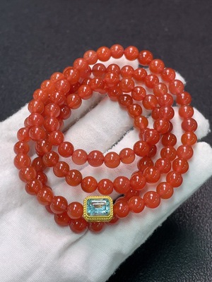 C34006187 Red Agate Bead Strand with Visible Organic Matter, Topaz Accents, Undetermined Color Origin, Non-Gold, Total Weight Approx. 44.16g, 6.5mm Beads