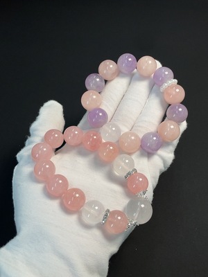 C39589580 Crystal Bracelet (Pink & White Only, Visible Organic Matter, Non-Natural Accent Stones Considered, Approx. 36.21g Total Weight, ~12.3mm Beads, Numerous Inclusions)