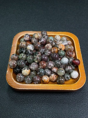 C37415108 Crystal bead strand with undetermined color origin, visible organic matter, total weight approx. 41.28g, size 9.7-13.3mm, non-natural accented stones (filled)