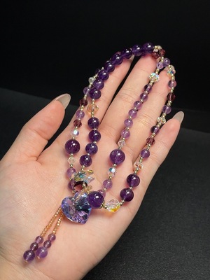 C34991359 Crystal Beaded Necklace with Visible Organic Inclusions, Non-Gold, Total Weight Approx. 83.49g, Sell as a Lot