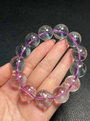C37456890 Crystal Bracelet, Color Origin Undetermined, Visible Organic Matter, Total Weight Approx. 21.66g, Size About 9.3mm (Color)