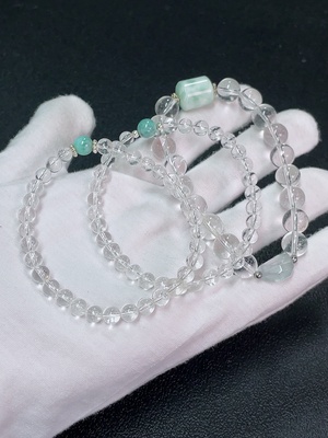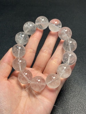 C35092739 Crystal Bracelet with Visible Organic Inclusions, Total Weight Approximately 74.81g, Bead Size About 15.6mm