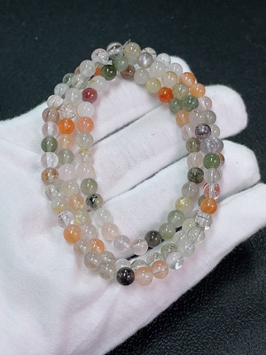 C38484002 Crystal Bead Strand, Color Origin Undetermined, Visible Organic Matter, Total Weight Approx. 21.02g, Size ca. 5.4mm (Color)