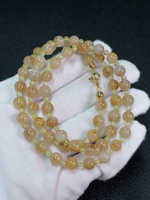 C37435133 Crystal bead strand, color origin undetermined, organic matter visible, total weight approx. 39.06g, size approx. 7.3mm (filled)