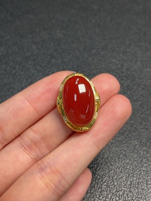 C34009777 South Red Agate Ring 18K Gold Total Weight Approx. 3.0g Size 10