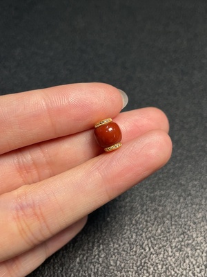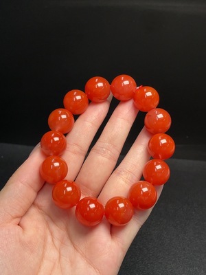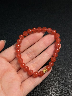C29369755 South Red Agate Bracelet with 99% Gold Content, Approximately 7.9mm, Total Weight About 12.60g, Paired with Amber
