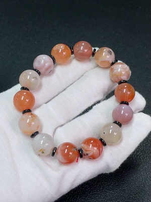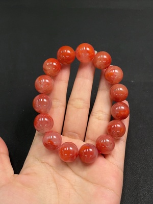 C37378935 South Red Agate Bracelet with Visible Organic Matter, Total Weight Approximately 29.34g, Size About 10.3mm