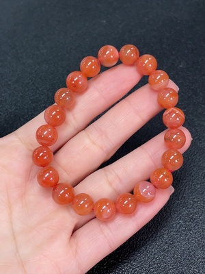C37370544 Red Agate Bracelet with Visible Organic Matter, Total Weight Approximately 22.46g, Bead Size About 9.3mm