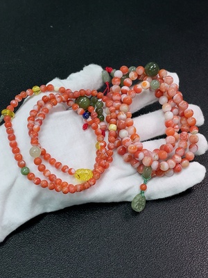 C36304436 Red Agate Bead Bracelet with Other Mineral Components, Visible Organic Matter, Non-Natural Accent Stones, Total Weight Approx. 92.98g, Sell as a Lot