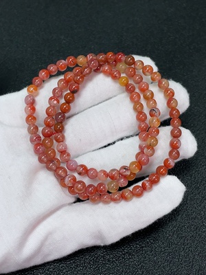 C37417003 Red Nanhong Agate Bead Strand, Organic Inclusions Visible, Total Weight Approx. 20.15g, Size Approx. 5.1mm