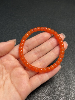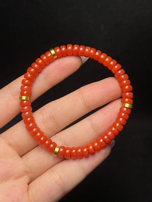 C35144438 Red Agate Bracelet with Visible Organic Matter, Non-Gold, Total Weight Approximately 8.5g, Size About 4.8mm