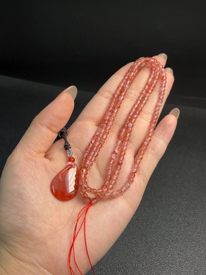 C31657904 South Red Agate Jewelry with Visible Organic Material, Total Weight Approx. 16.54g, Including Cord, Sell as a Lot